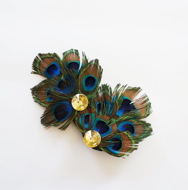 Wykonane z drobnych pawich piórek oraz ozdobnych oczek