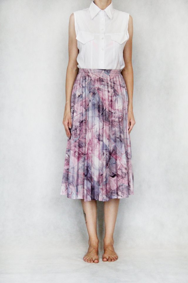 Plisowana śliczna spódnica wyglądająca jak obraz na materiale.
