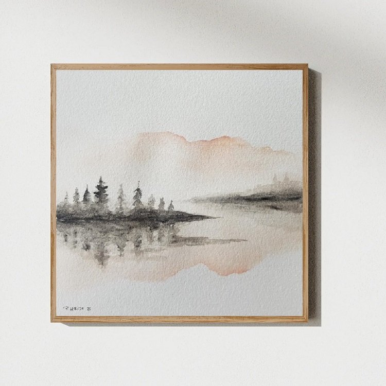 Akwarela wykonana na papierze akwarelowym 300g/m2, format 20/20 cm . Przedstawiona jest w przykładowej ramie. Zapraszam :)