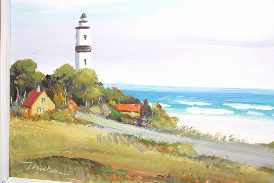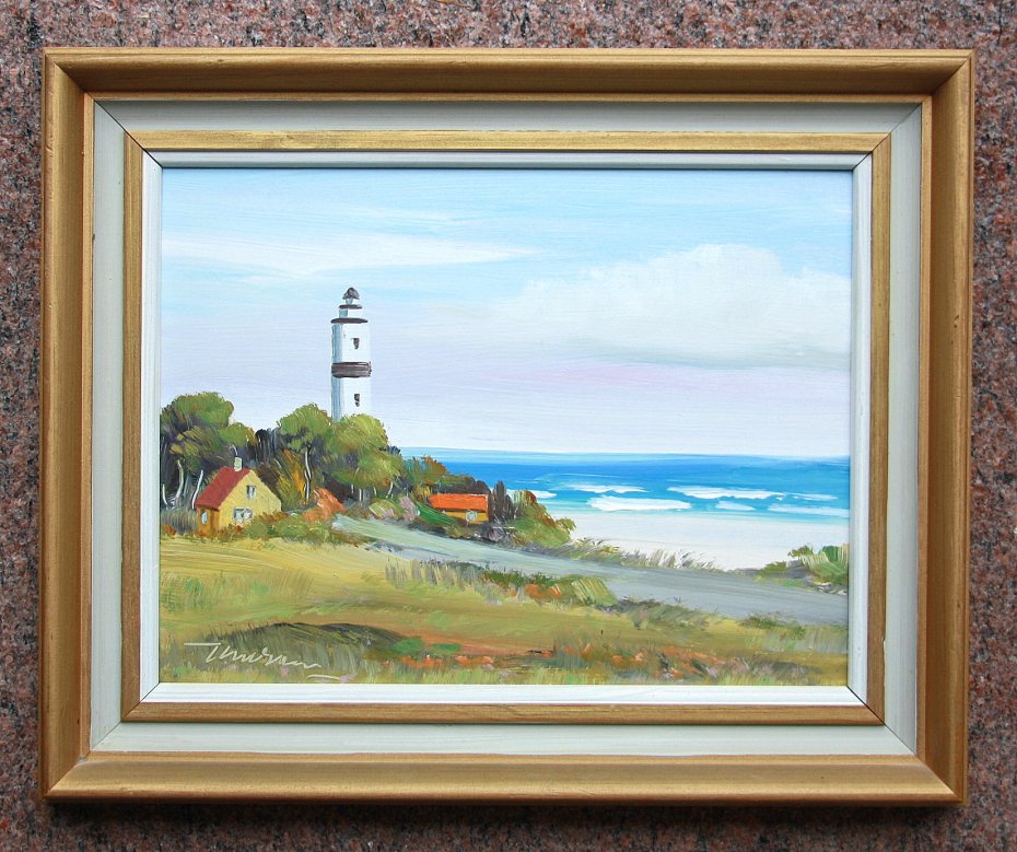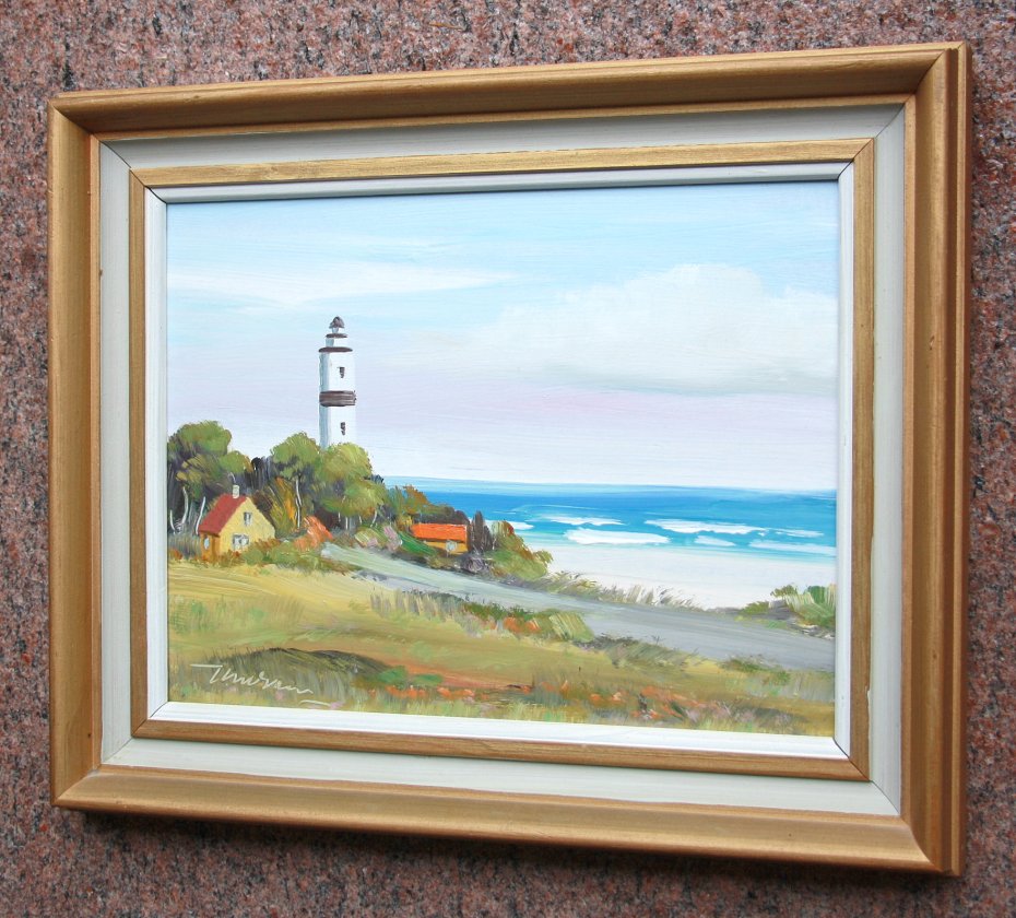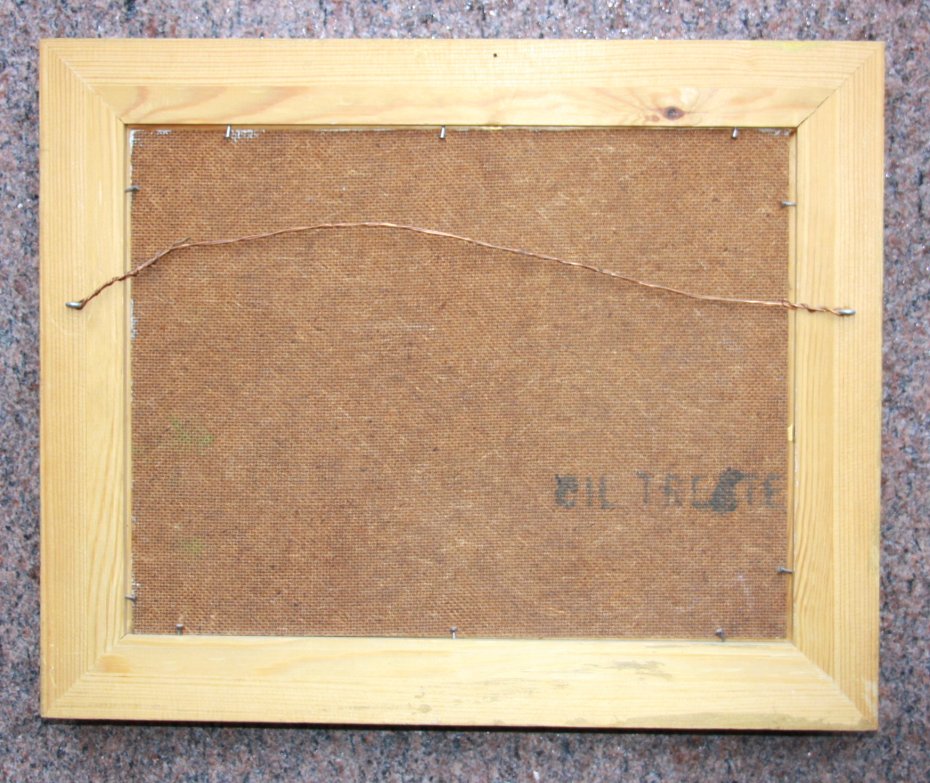 Oryginalny stary obraz, pejzaż . Olej na płycie. Oprawiony w drewnianą ramę w kolorze starego złota. Sygnowany.