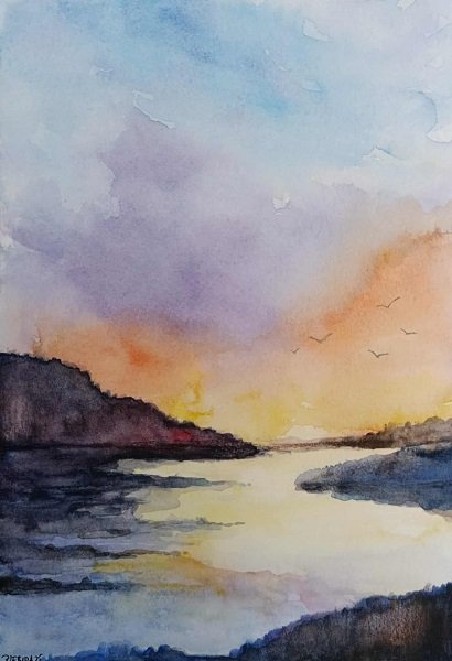 Praca wykonana farbami akwarelowymi i kredkami akwarelowymi na papierze akwarelowym 300g/m2, format A4.Zapraszam :)