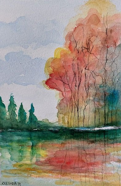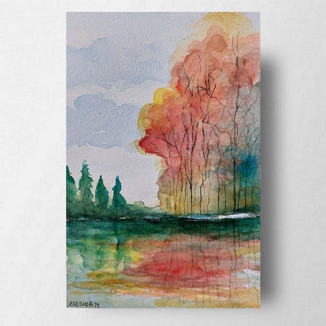 Praca wykonana farbami akwarelowymi i kredkami akwarelowymi na papierze akwarelowym 300g/m2, format A5.Zapraszam :)