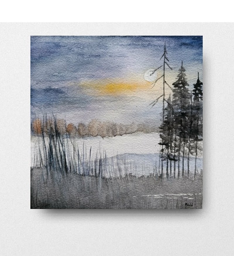 Oryginalna akwarela, wykonana profesjonalnymi farbami akwarelowymi Rembrandt na papierze akwarelowym 300 g/m2 . Praca jest sygnowana. Wymiary pracy :20/20 cm . Kolory mogą się nieznacznie różnić od oryginału, co jest uzależnione od ustawień monitora.