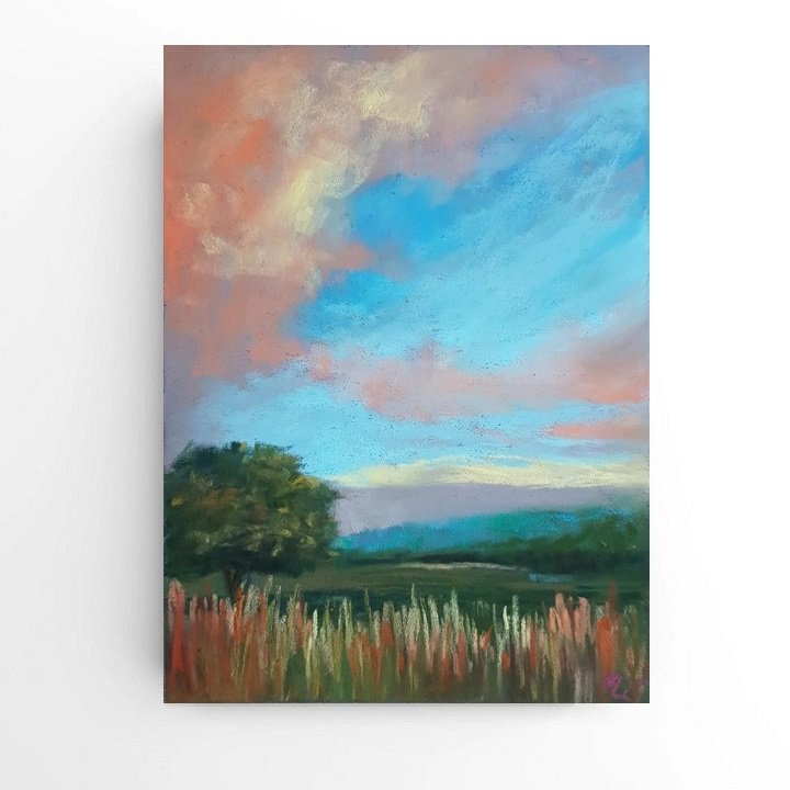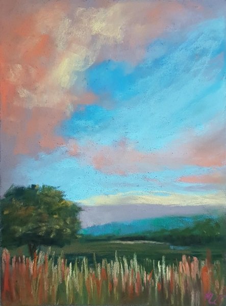 Praca wykonana pastelami suchymi na papierze przeznaczonym do pasteli 340 g/m2, format 24/18 cm. Rysuję kredkami Sennelier/Rembrandt. Rysunek zabezpieczony fiksatywą. Zapraszam :)