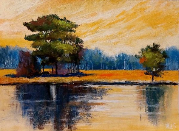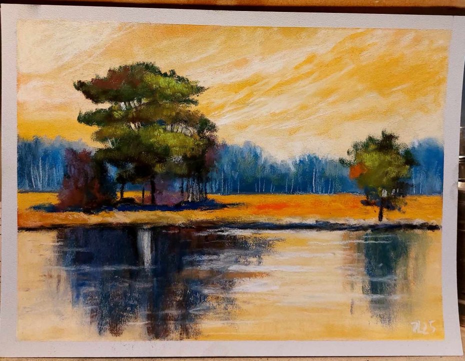 Praca wykonana pastelami suchymi na papierze przeznaczonym do pasteli Pastelmat 360 g/m2, format 18/24 cm . Rysuję kredkami Sennelier/Rembrandt. Rysunek zabezpieczony fiksatywą. Zapraszam :)