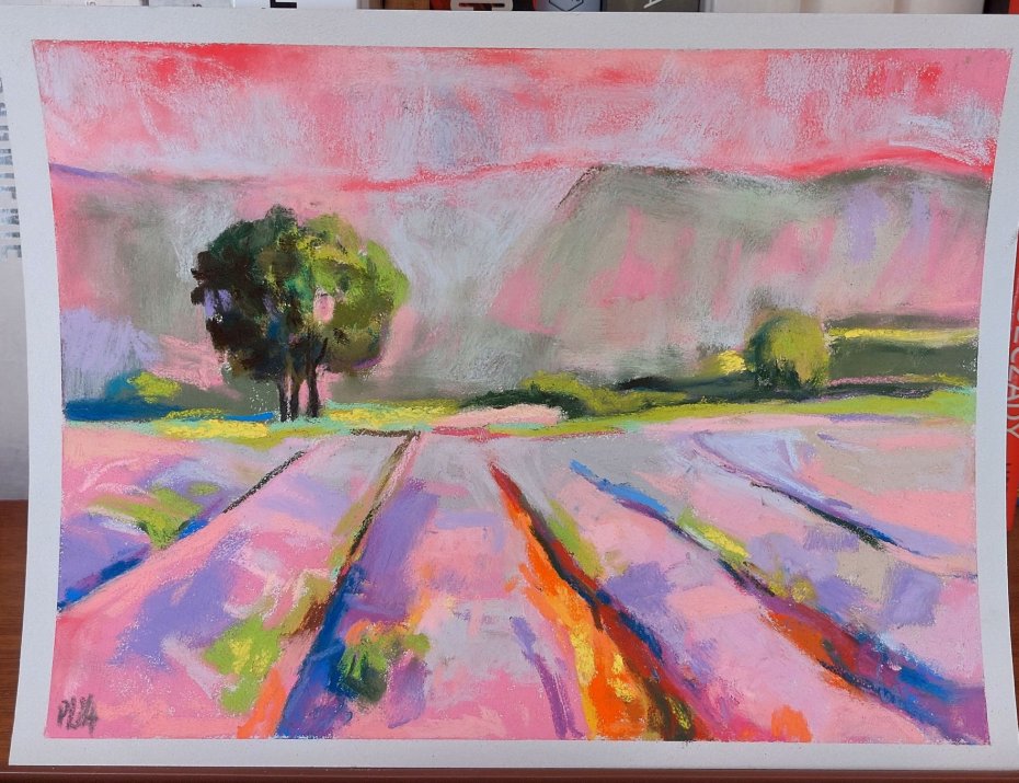 Praca wykonana pastelami suchymi na papierze przeznaczonym do pasteli Pastelmat 360 g/m2, format 18/24 cm. Rysuję kredkami Sennelier/Rembrandt. Rysunek zabezpieczony fiksatywą. Zapraszam :)