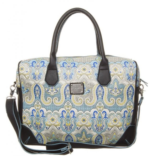 Rewelacyjna duża torba od Pepe Jeans , wykonana z wysokiej jakości skóry ekologicznej, świetny design w printy w nieprzypadkowo skomponowanej gamie kolorystycznej, torba bardzo pojemna, zasuwana na suwak, w środku jedna mała kieszonka na suwak( w środku asymetrycznie uszyta- wada fabryczna -taką kupiłam ),oraz dwie luźne komory, torba do noszenia w rękę, na ramieniu, lub jako listonoszka- posiada długi odpinany regulowany pasek.W środku niebieska podszewka. Z przodu metalowe logo marki.