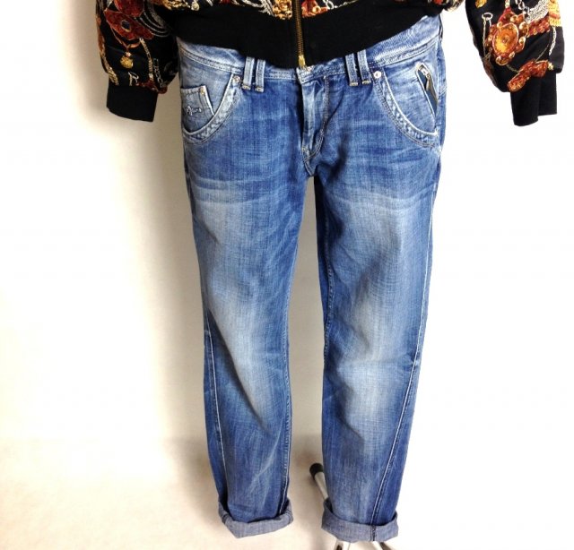 Rozmiar około 40 Proszę o porównanie wymiarów.Proszę wziąśc pod uwagę że spodnie powinny być troszkę luźniejsze od uda do bioder co typowe dla Boyfriendów.