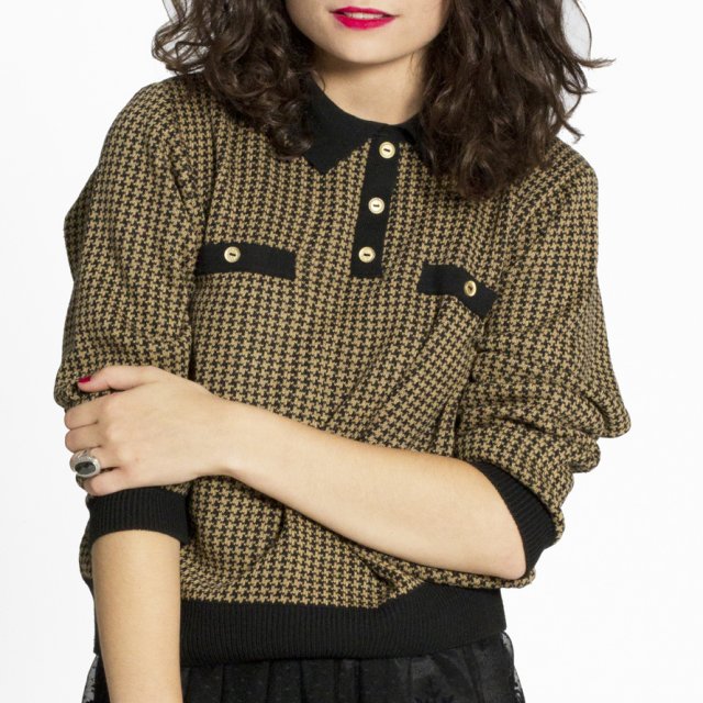 Wyjątkowy sweterek w czarno-beżową pepitkę