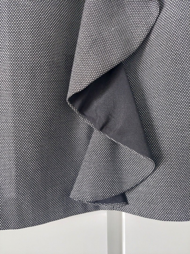 spódnica marki per una z falbaną z przodu. Materiał brak metki. zamek z tyłu. kolor drobna pepitka czarnych i białych nitek. stan bardzo dobry (prawdopodobnie wycięta podszewka?). Rozmiar z metki 16. proszę sprawdzić wymiary. Podaję wymiary mierzone na płasko;