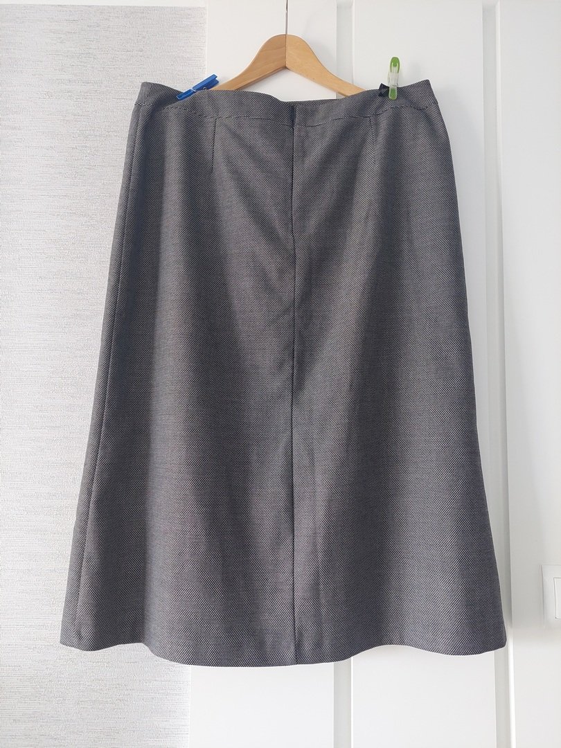 spódnica marki per una z falbaną z przodu. Materiał brak metki. zamek z tyłu. kolor drobna pepitka czarnych i białych nitek. stan bardzo dobry (prawdopodobnie wycięta podszewka?). Rozmiar z metki 16. proszę sprawdzić wymiary. Podaję wymiary mierzone na płasko;