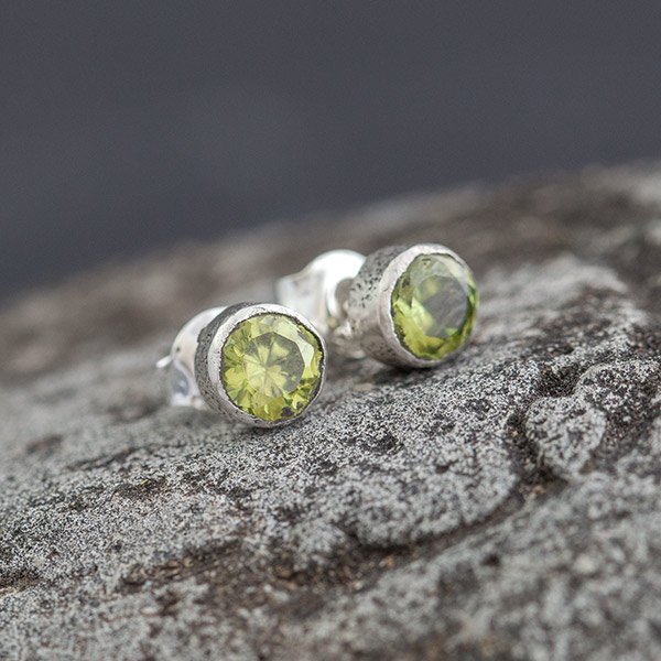 Delikatne kolczyki - sztyfty wykonane ręcznie ze srebra próby 925 oraz peridotu. Wielkość kolczyków 6 mm. Kolczyki są ozdobnie zapakowane.