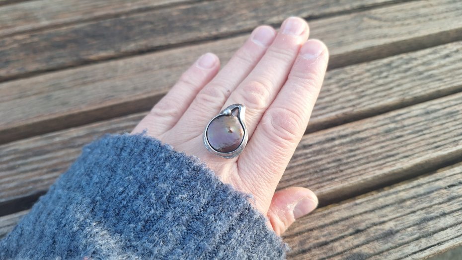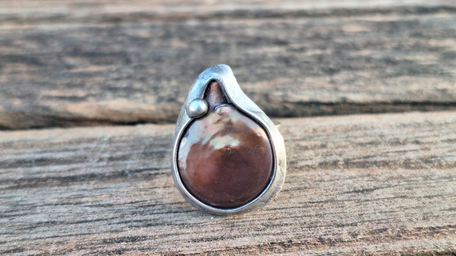 Tagi: #brązowy pierścionek, #perła, #pierścionek z perłą, #regulowany pierścionek