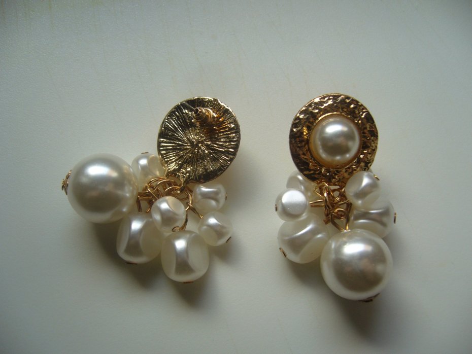 Piękne pozłacane kolczyki na sztyfty zdobione perłami