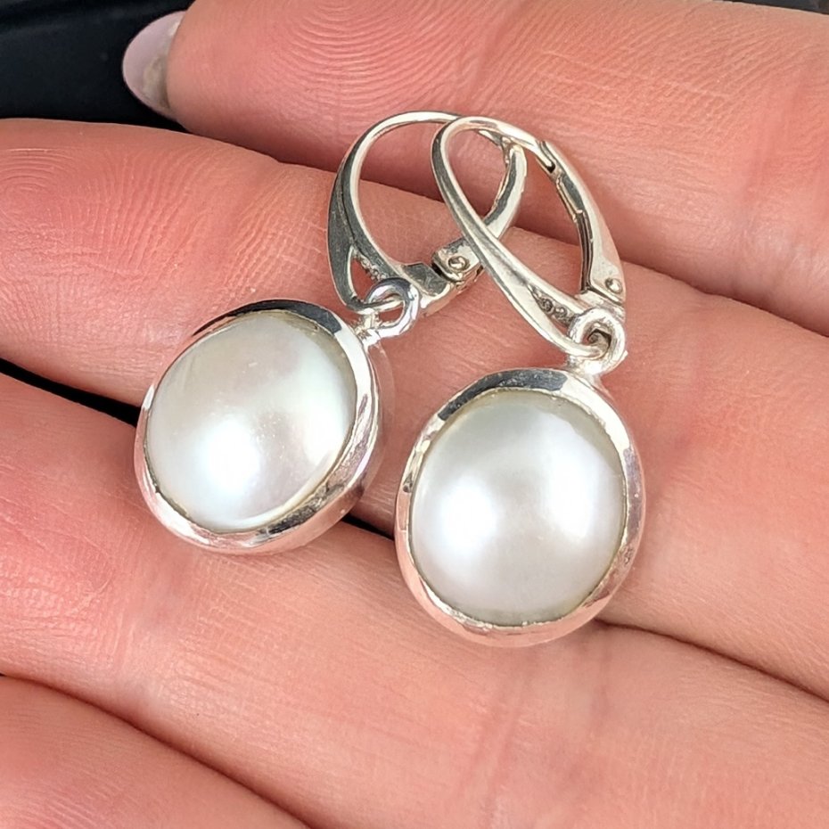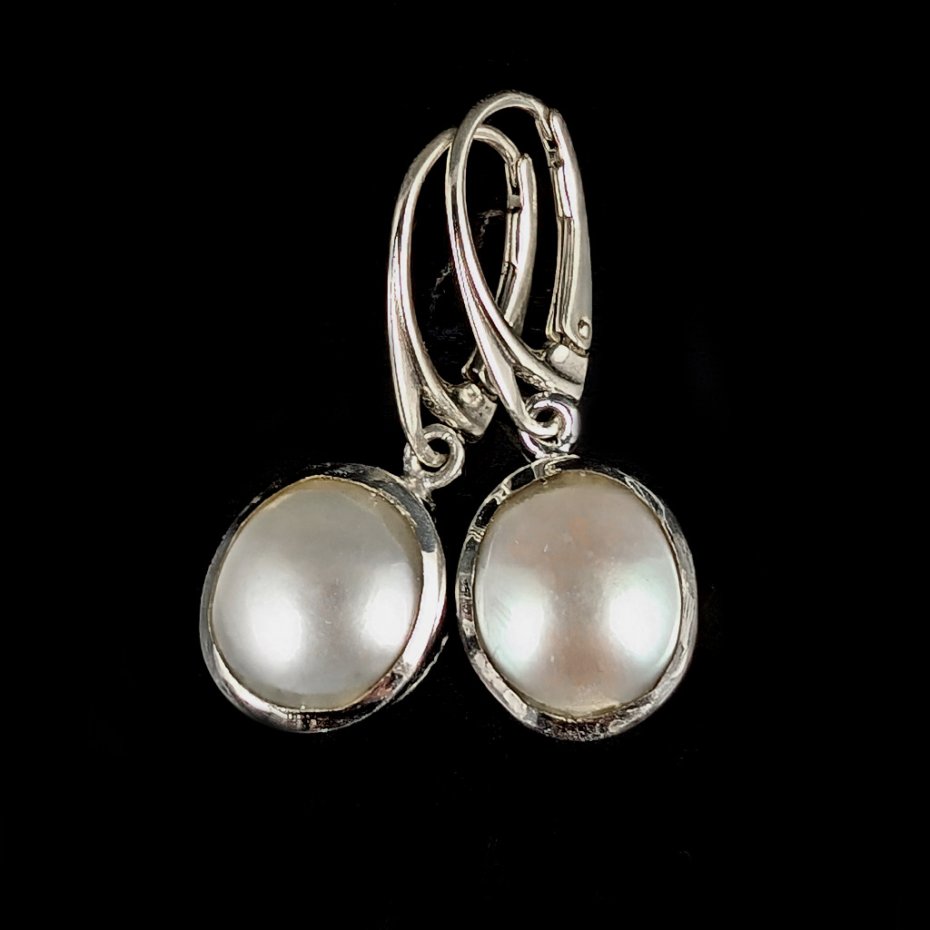Okazałe kolczyki wykonane ze srebra próby 925 z w komponowanymi naturalnymi perłami. Ponadczasowa elegancja, klasyka z nutą awangardy. Wymiary pereł 14 x 12 mm, długość z biglami 33 mm. Waga jednego kolczyka 3,58 grama. Kolczyki zostaną zapakowane w ozdobne pudełeczko. Wykonane przez dostawcę kamieni.