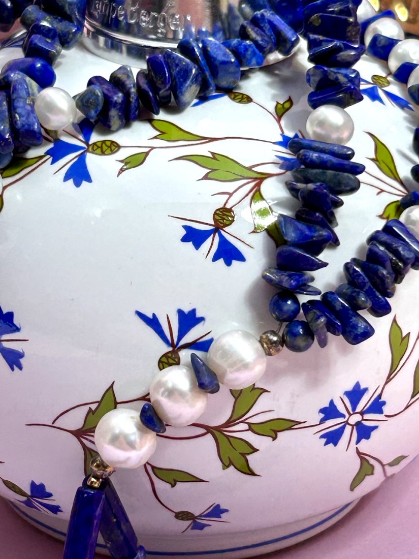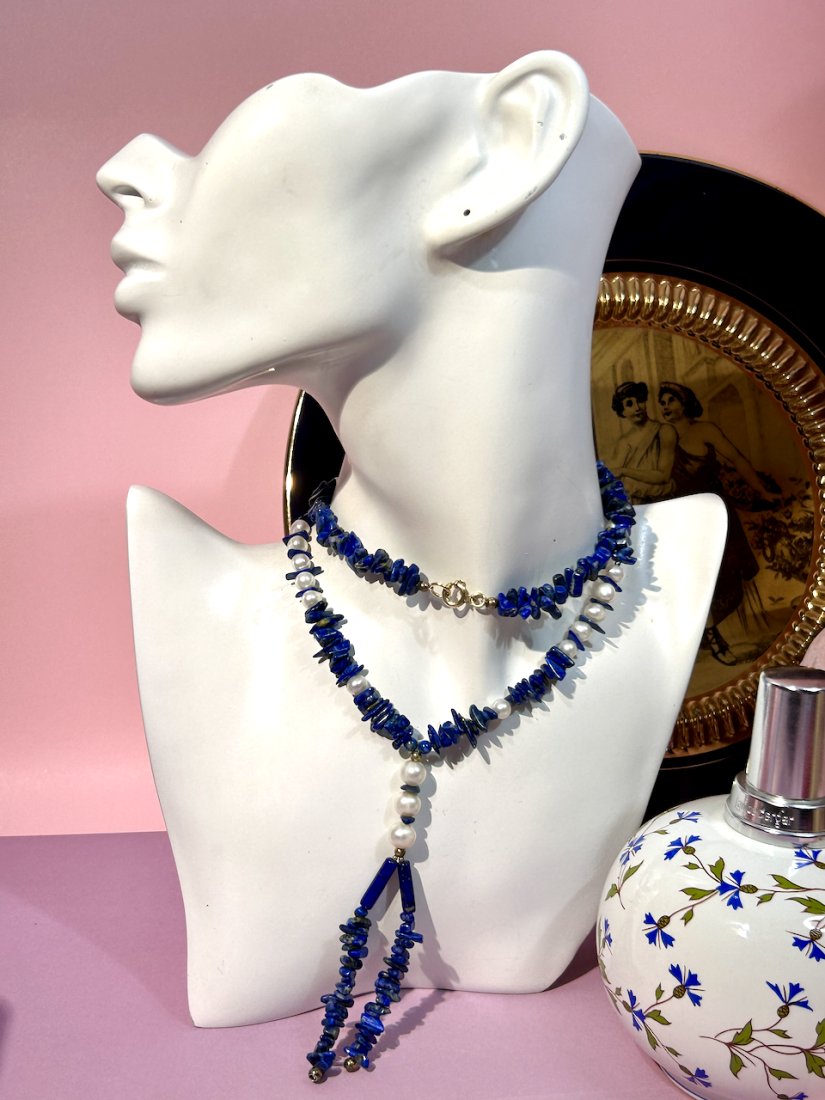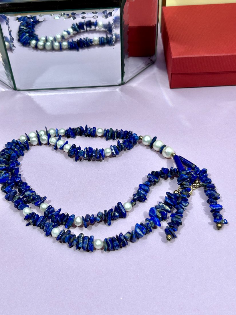 Tagi: #kolia vintage perły, #naszyjnik lapis lazuli, #naszyjnik vintage prezent, #perły naturalne