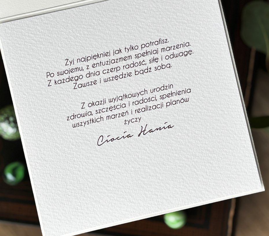 Cena obejmuje kartkę wraz z kopertą w kolorze ecru.