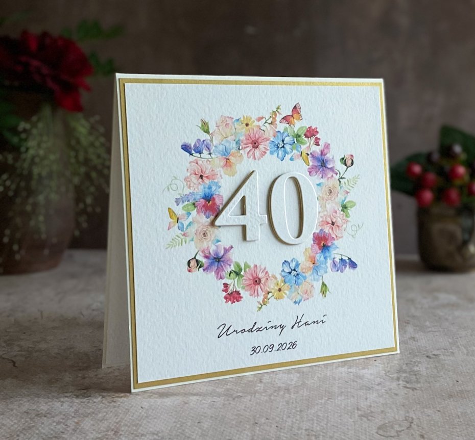 Tagi: #40 urodziny, #elegancka kartka urodzinowa, #kartka na 40 urodziny, #kartka okolicznościowa