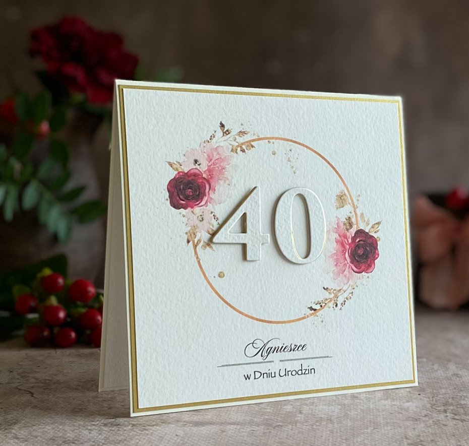 Tagi: #40 urodziny, #elegancka kartka urodzinowa, #kartka na 40 urodziny, #kartka okolicznościowa