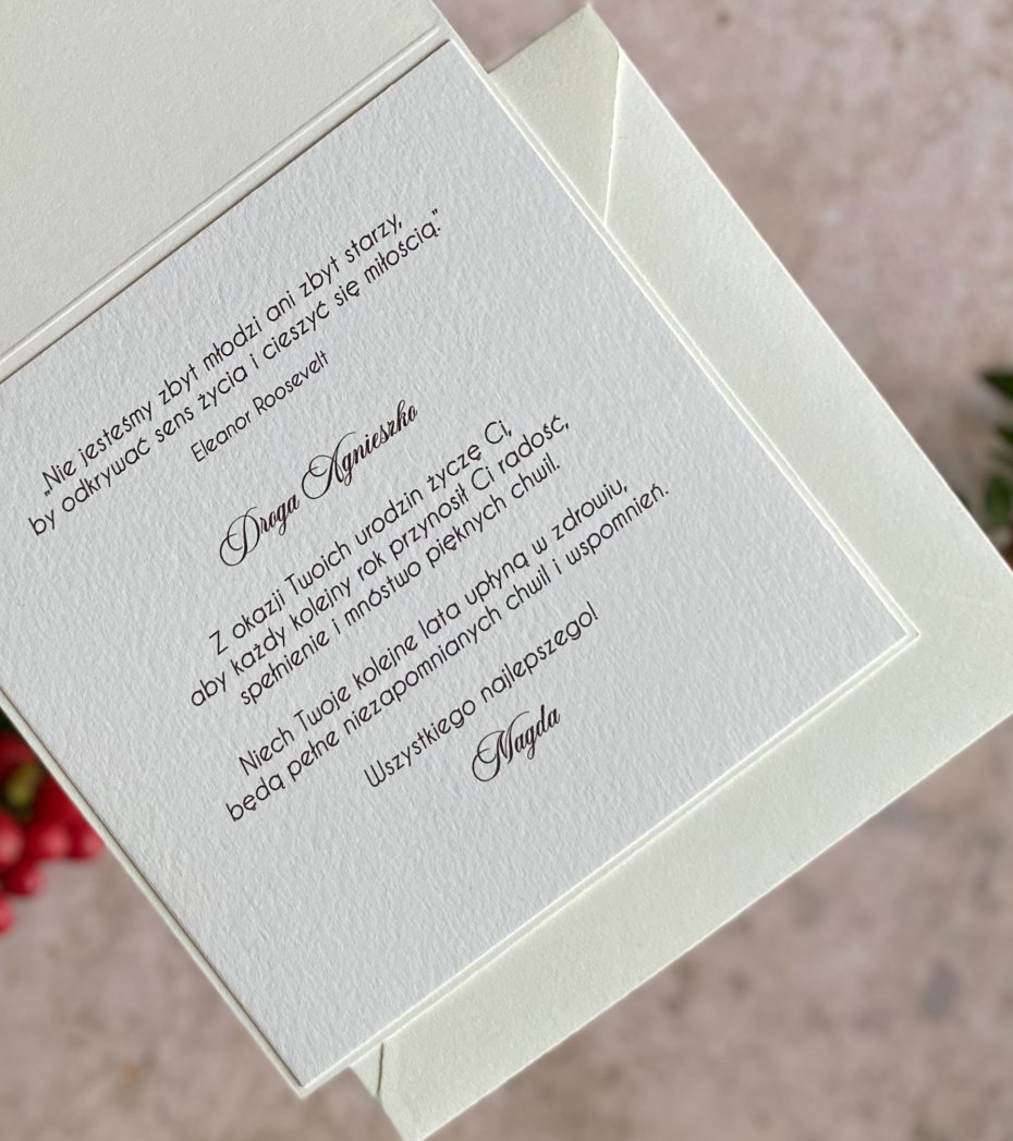 Cena obejmuje kartkę wraz z kopertą w kolorze ecru.