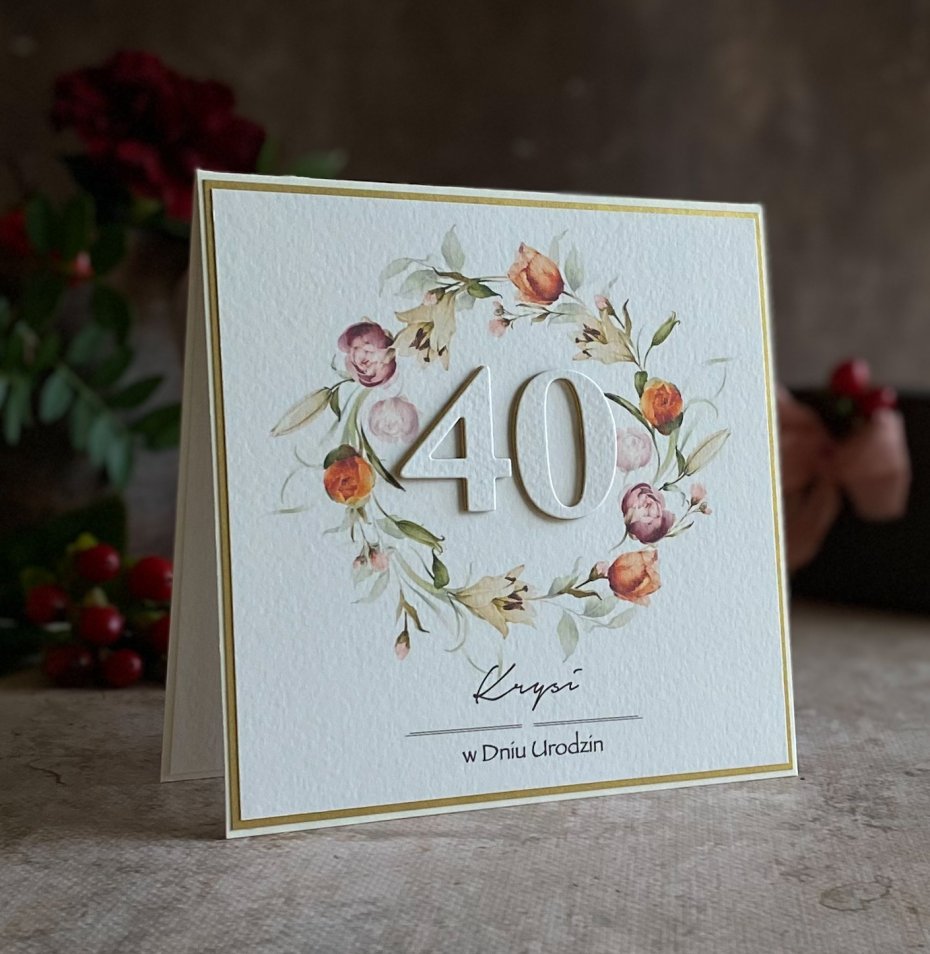 Tagi: #40 urodziny, #elegancka kartka urodzinowa, #kartka na 40 urodziny, #kartka okolicznościowa