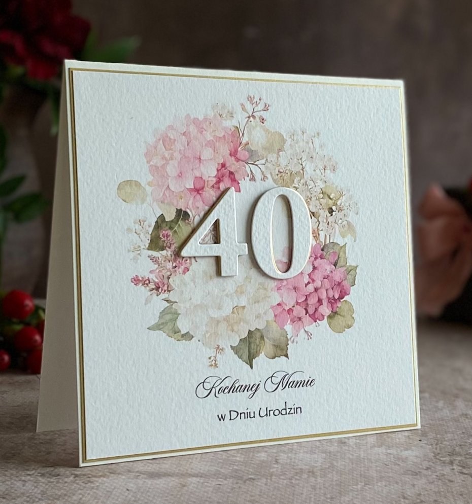 Tagi: #40 urodziny, #elegancka kartka urodzinowa, #kartka na 40 urodziny, #kartka okolicznościowa