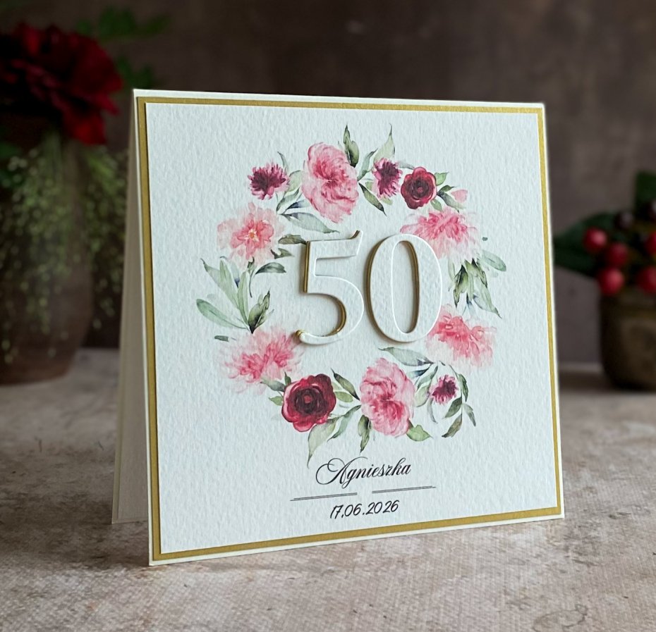 Tagi: #50 urodziny, #elegancka kartka urodzinowa, #kartka na 50 urodziny, #kartka okolicznościowa
