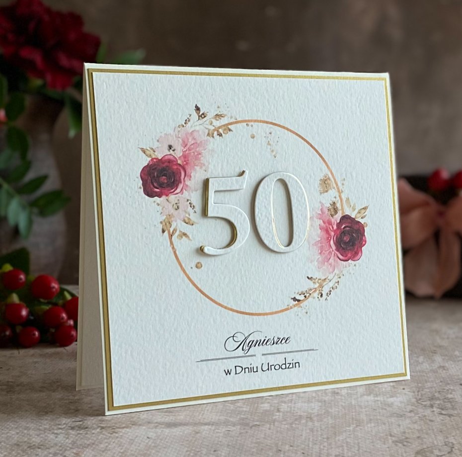 Tagi: #50 urodziny, #elegancka kartka urodzinowa, #kartka na 50 urodziny, #kartka okolicznościowa