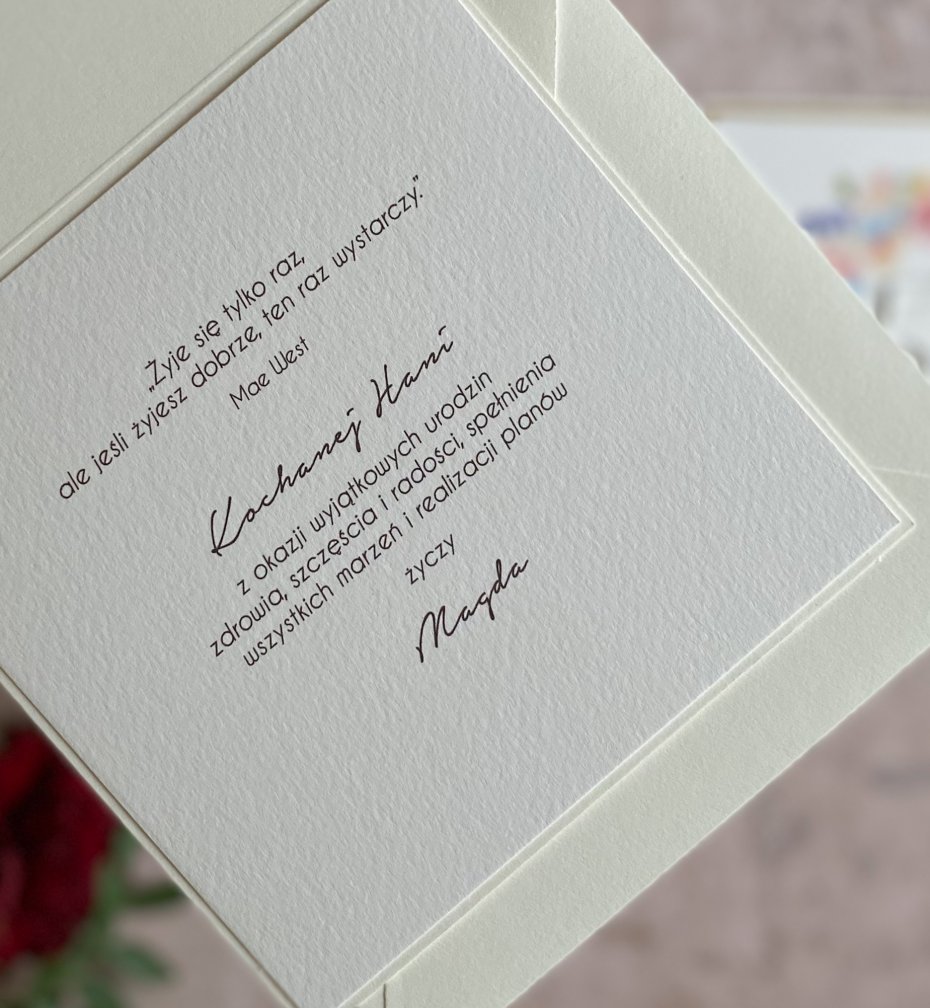 Cena obejmuje kartkę wraz z kopertą w kolorze ecru.