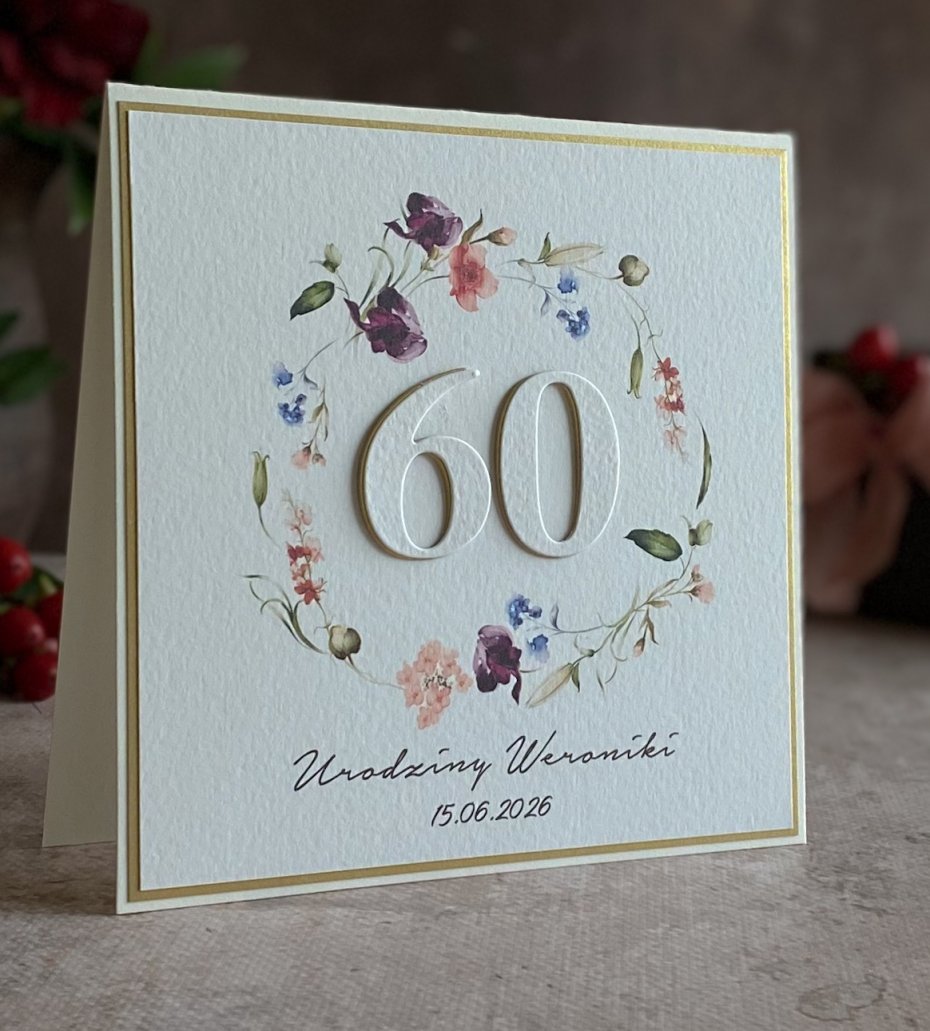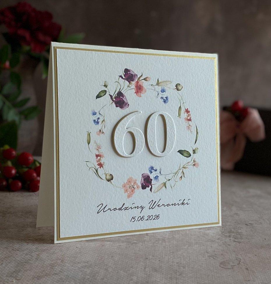 Tagi: #60 urodziny, #elegancka kartka urodzinowa, #kartka na 60 urodziny, #kartka okolicznościowa