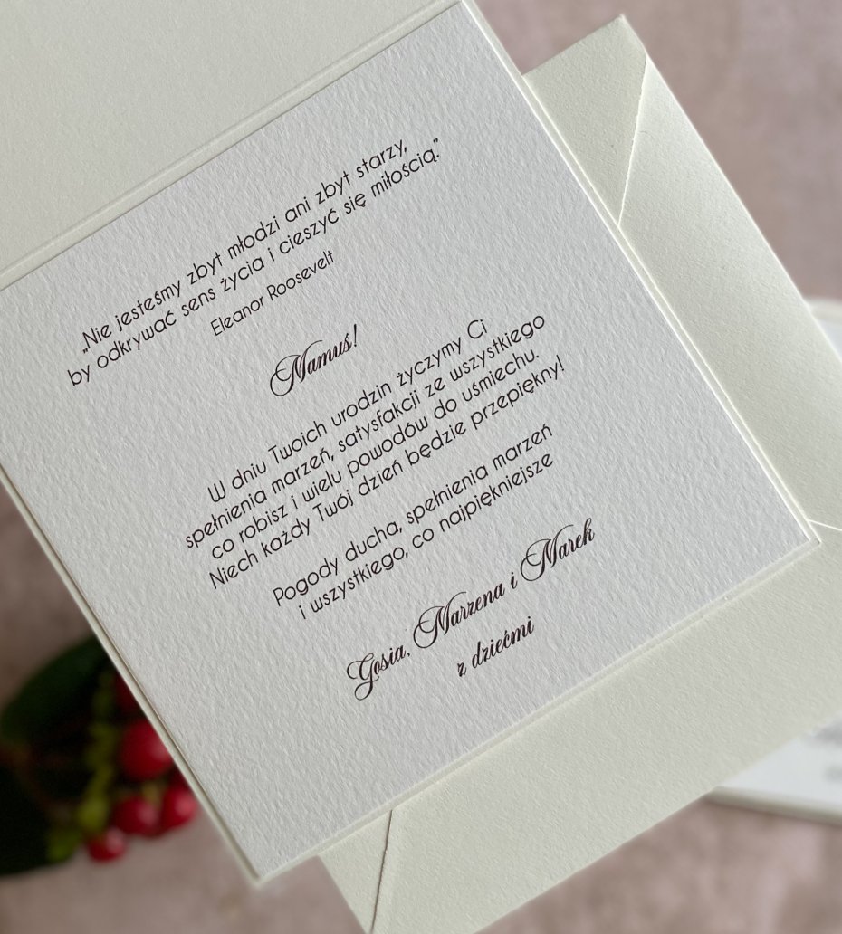Cena obejmuje kartkę wraz z kopertą w kolorze ecru.
