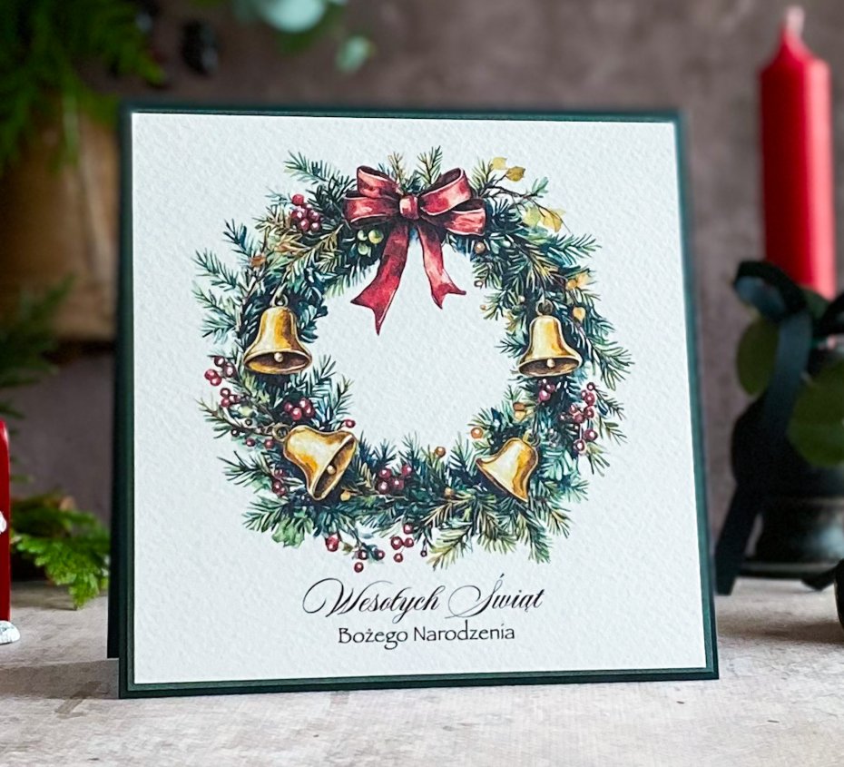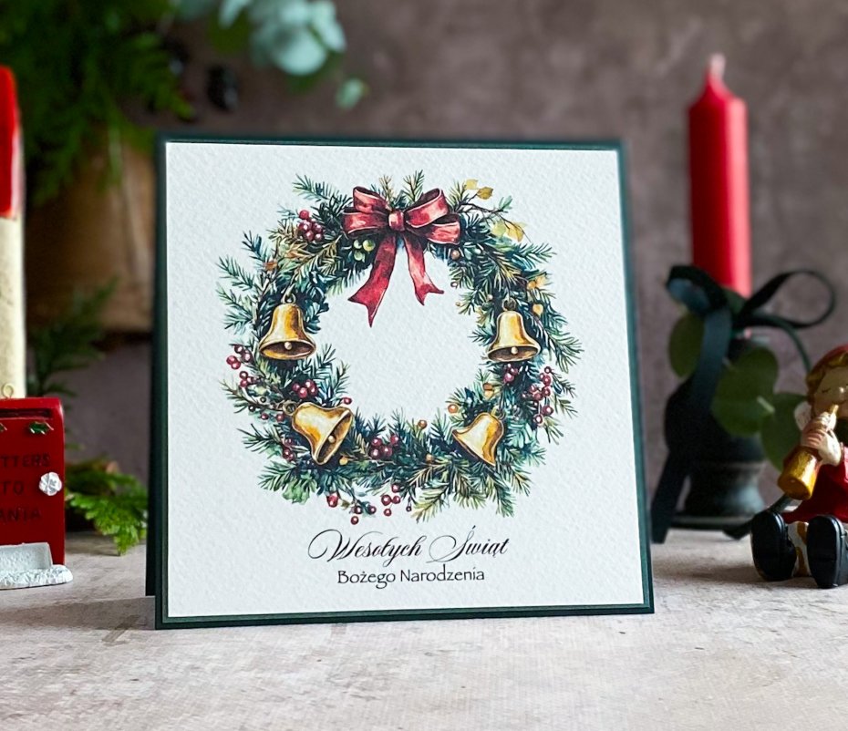 Elegancka i szykowna, ręcznie robiona, personalizowana kartka na Boże Narodzenie.