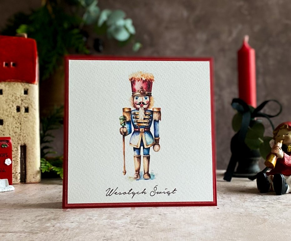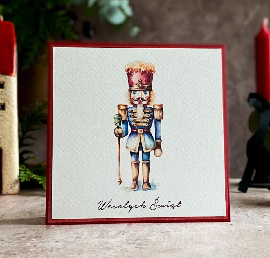 Elegancka i szykowna, ręcznie robiona, personalizowana kartka na Boże Narodzenie.