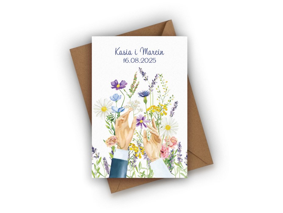 Jeśli chcesz, aby kartka była wyjątkowa i spersonalizowana, proszę o wpisanie w wiadomości: imion Młodej Pary oraz daty wydarzenia.