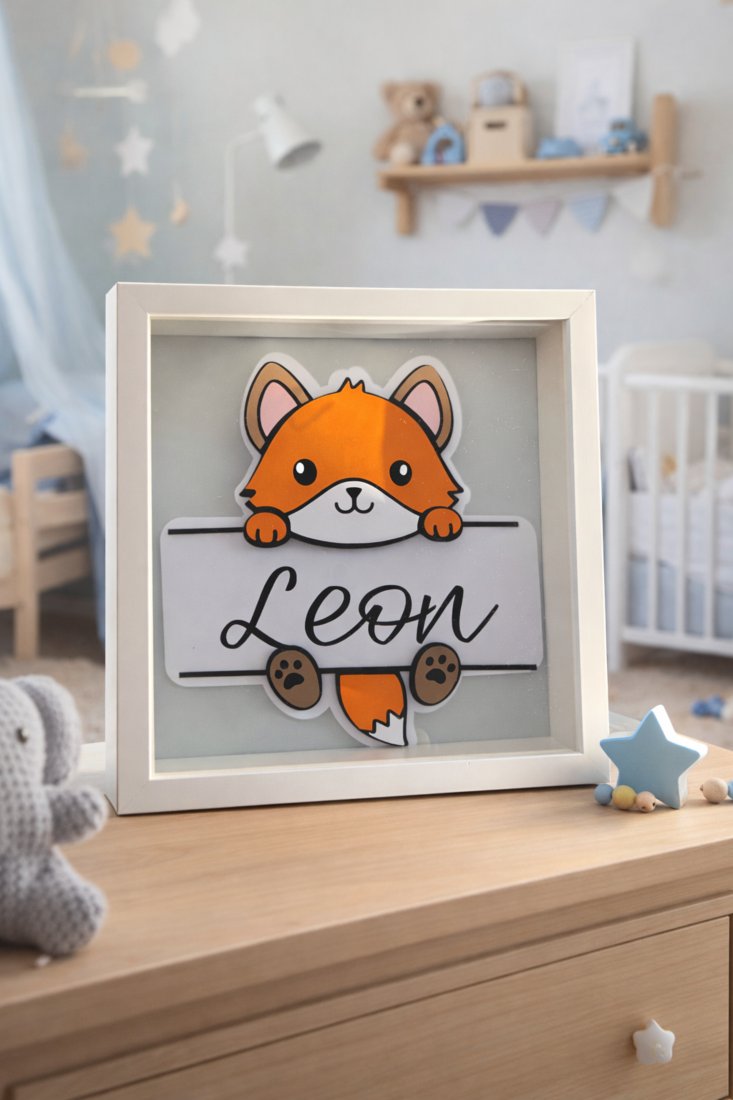 ???? Personalizowana Ramka z Liskiem 3D – Dekoracja z Imieniem | Idealny Prezent dla Dziecka