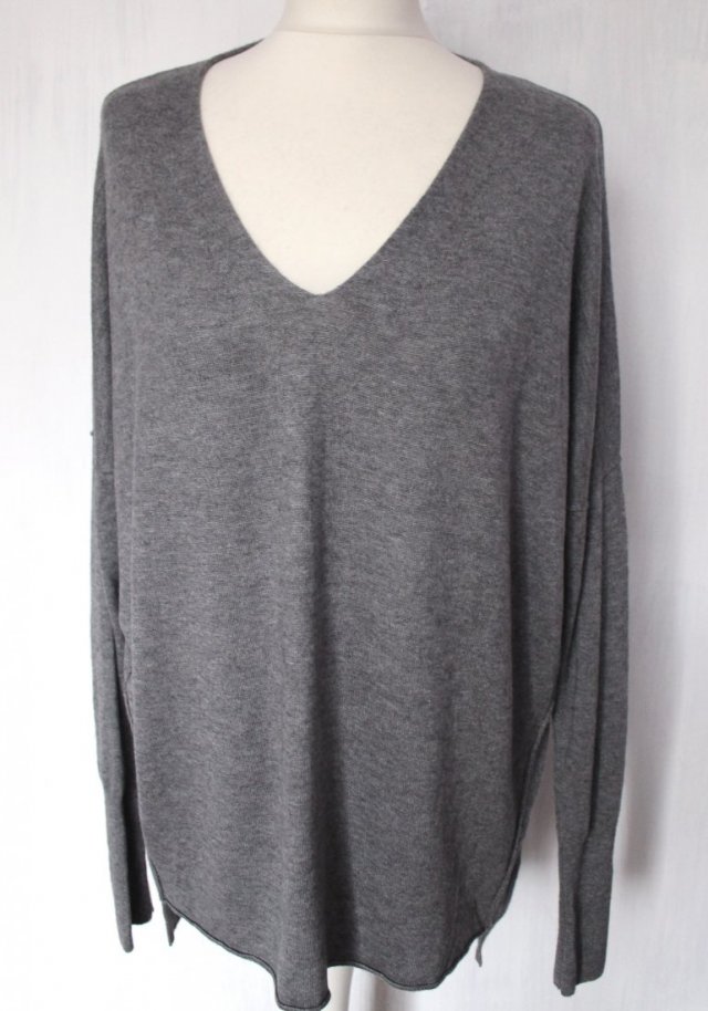 szary oversizowy sweterek z dekoltem w serek od włoskiej marki Phase Eight