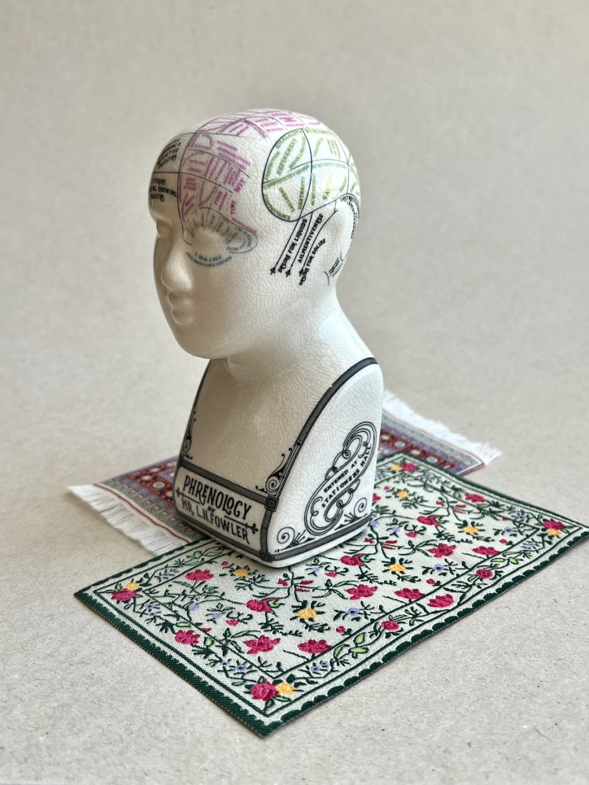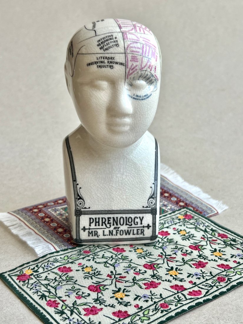Model autorstwa Lorenzo Nilesa Fowlera (L.N. Fowler), który stał się ikoną frenologii – dawnej teorii przypisującej cechy charakteru kształtowi i rozmiarowi poszczególnych obszarów czaszki.
