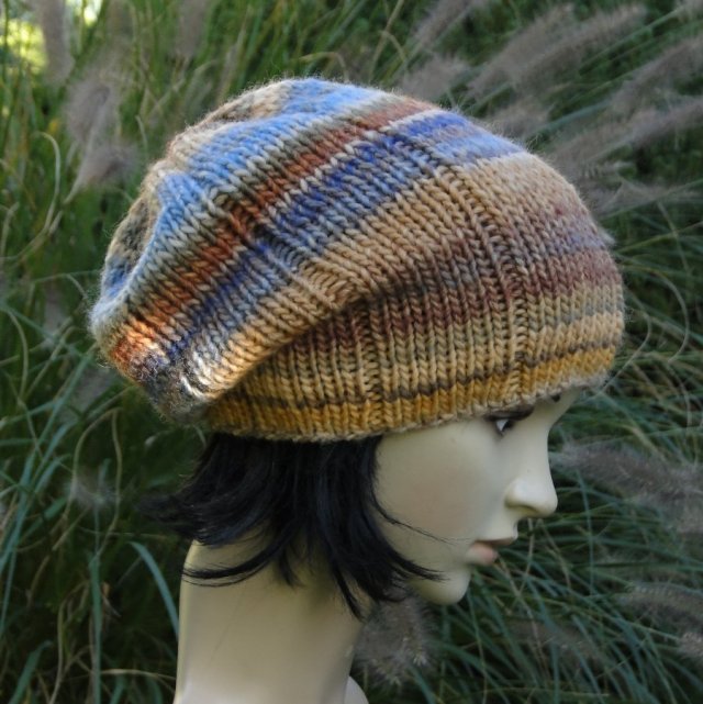 Ciepła, mięsista czapa wykonana ręcznie na drutach z włoczki w pięknym zestawieniu kolorystycznym (53% wełna, 47% akryl), przyjemna w dotyku. Czapka jest bezszwowa, dwustronna.