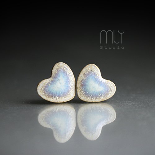 Ceramiczne kolczyki w formie sztyftów, ręcznie wykonane z delikatnej czekoladowobrązowej gliny kamionkowej, jednostronnie szkliwione mieszanką beżowo kremowych szkliw z efektem plamek, na antyalergicznych sztyftach w kolorze srebrnym. Średnica ok. 12mm. Polecam