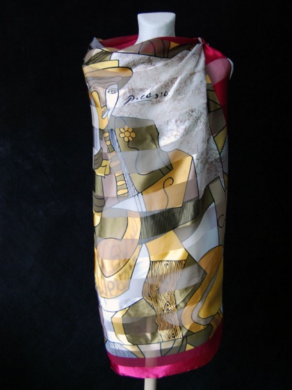 Duża chusta z motywem obrazu Picassa.Tkana w pasy [atłasowo-szyfonowe].