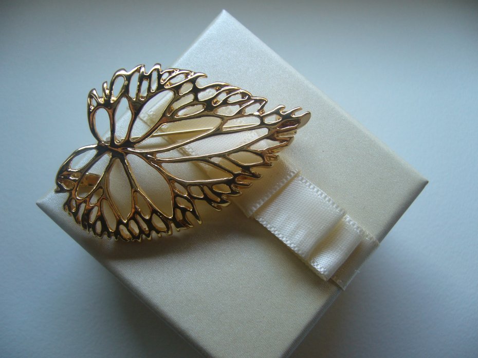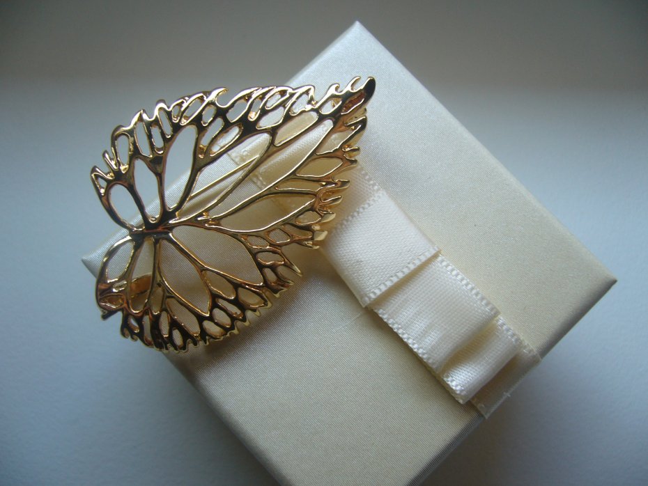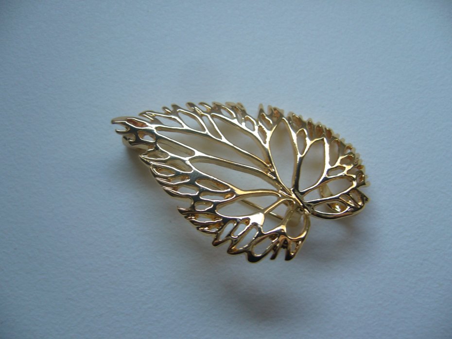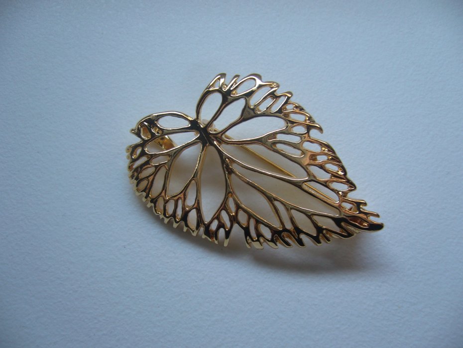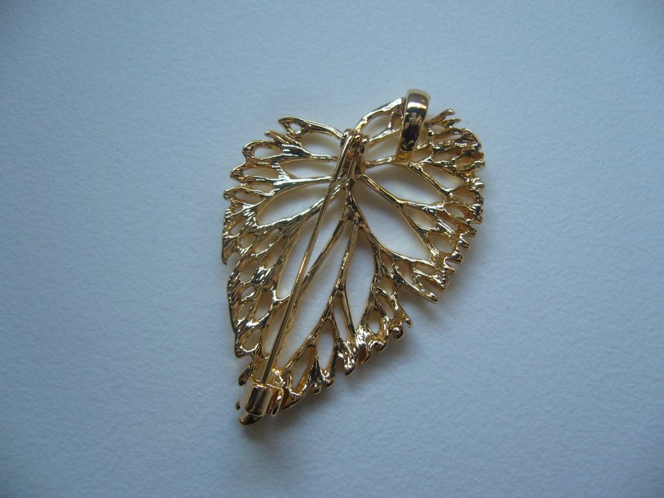 PIĘKNA POZŁACANA AŻUROWA BROSZKA ZAWIESZKA LIŚĆ