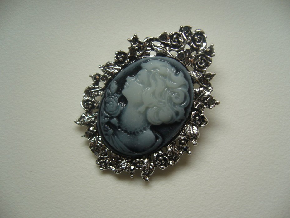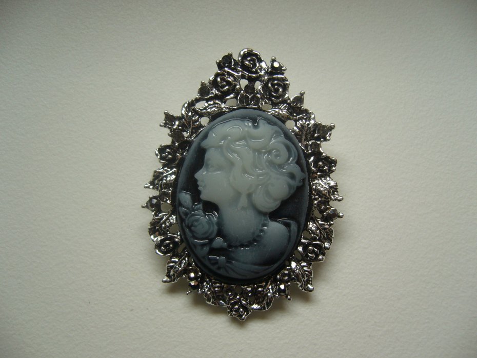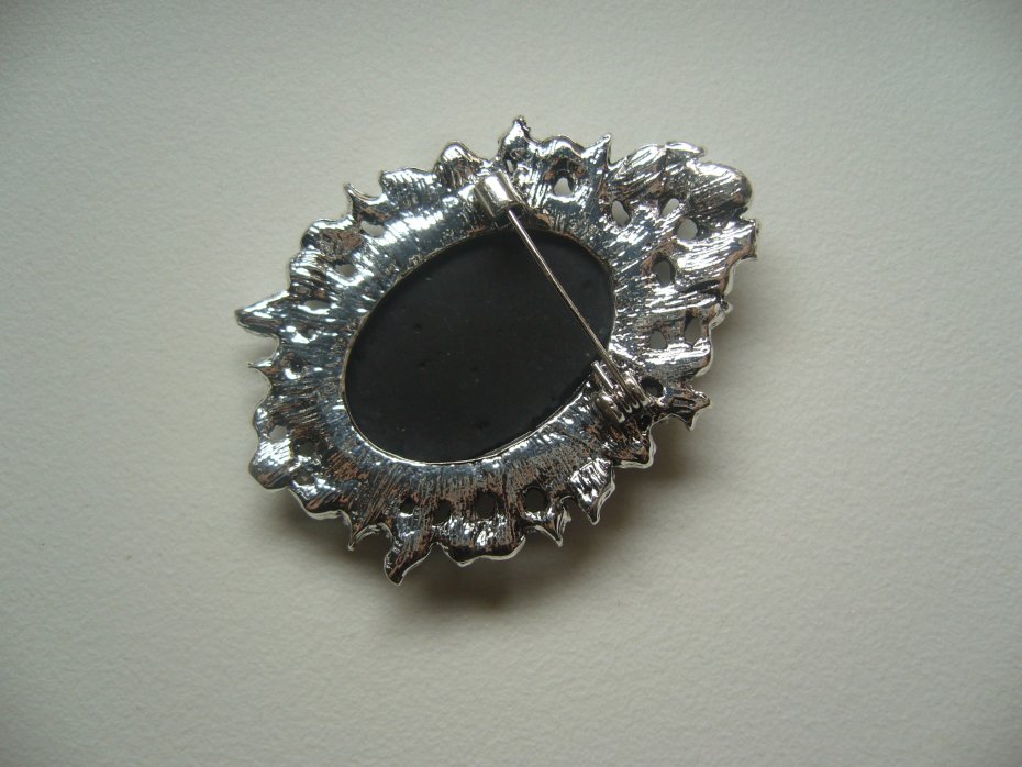 POSREBRZNA BROSZKA KAMEA ZDOBIONA CYRKONIAMI W KOLORZE MARKAZYTÓW