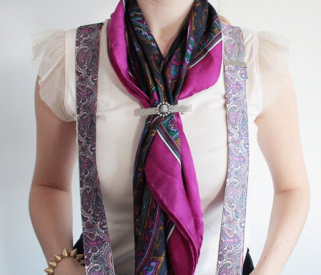 Zwiewna duża chusta w orientalne motywy, z gładką, fuksjową obwódką. Na pierwszym zdjęciu chustę spięłam spinką do włosów (dostępna również w mojej galerii).