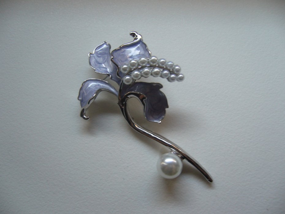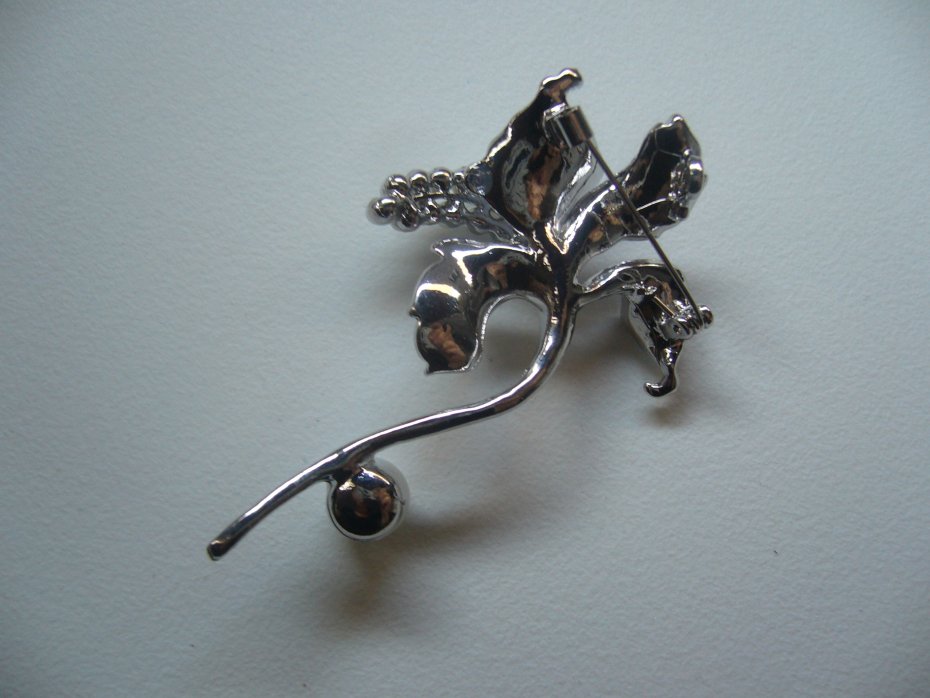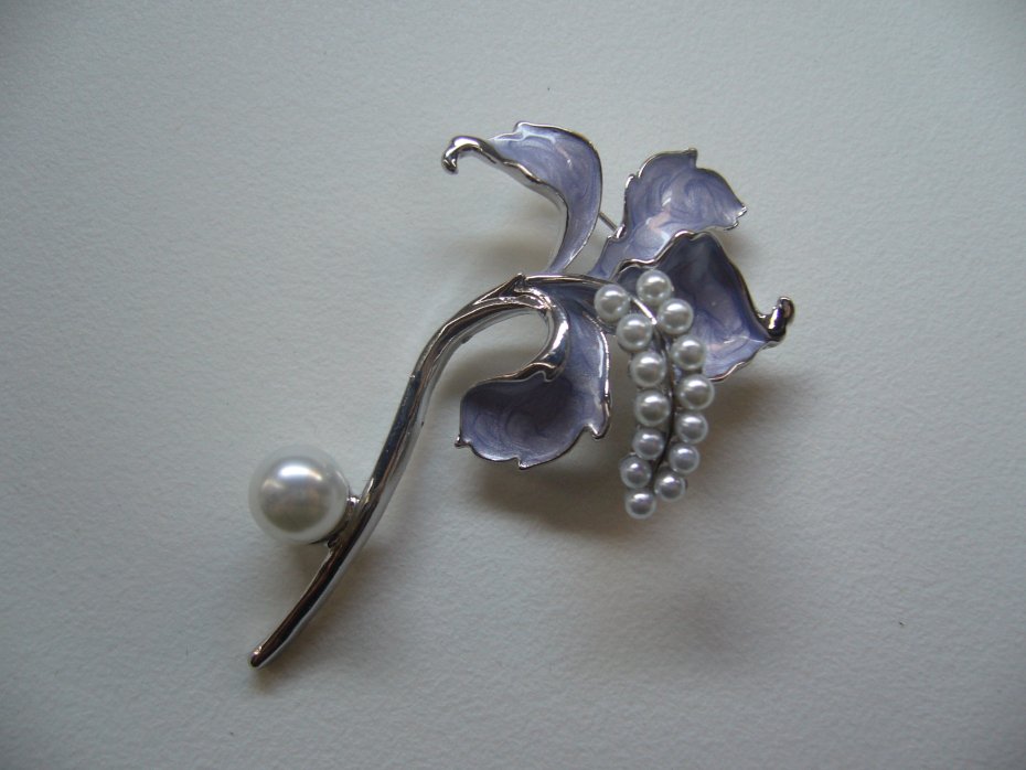 PIEKNA POSREBRZANA EMALIOWANA BROSZKA KWIAT ZDOBIONA PEREŁKAMI