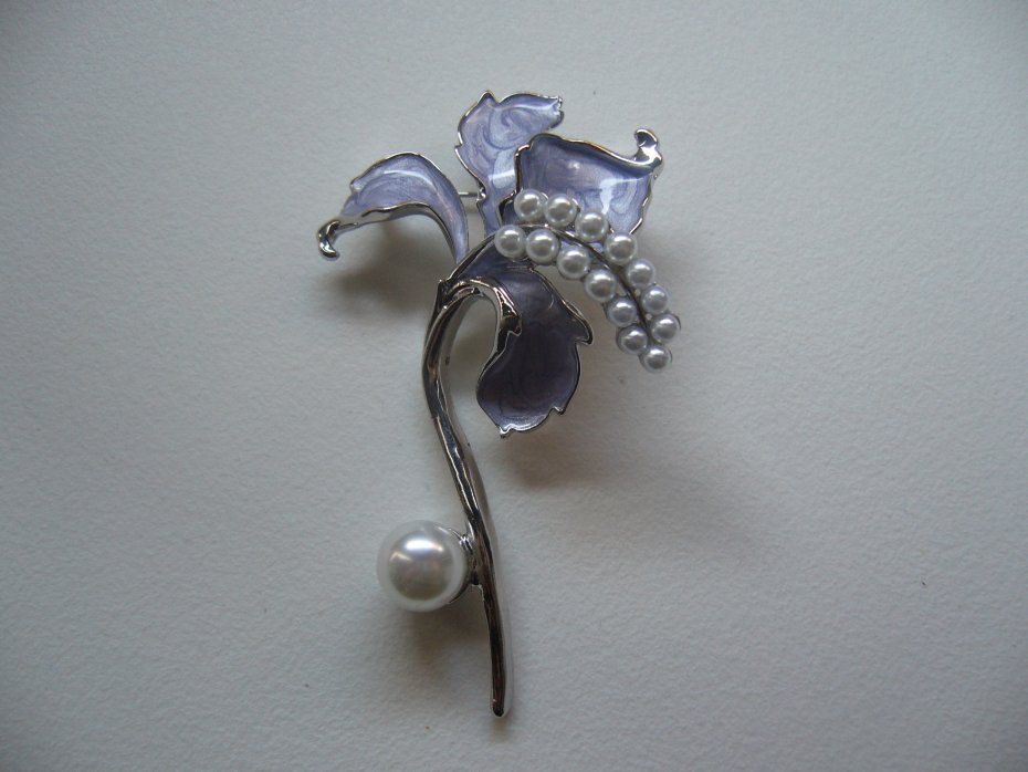 PIEKNA POSREBRZANA EMALIOWANA BROSZKA KWIAT ZDOBIONA PEREŁKAMI