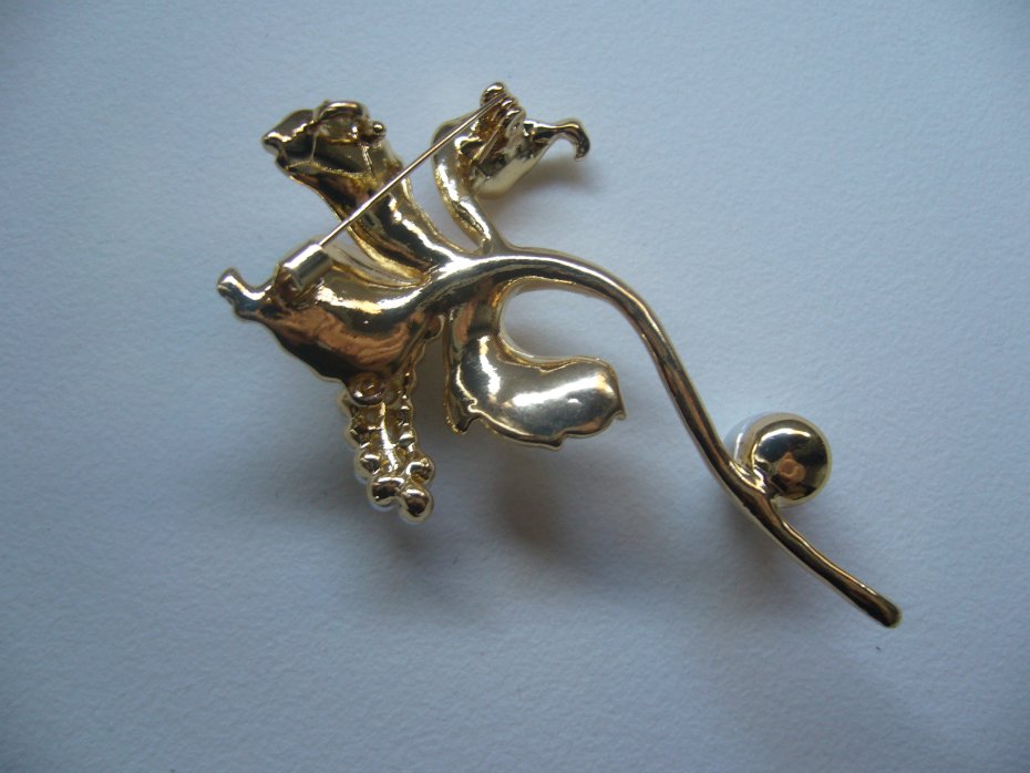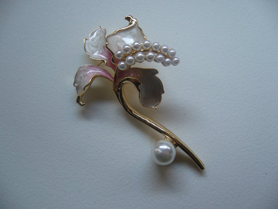 PIĘKNA POZŁACANA EMALIOWANA BROSZKA KWIAT ZDOBIONA PEREŁKAMI