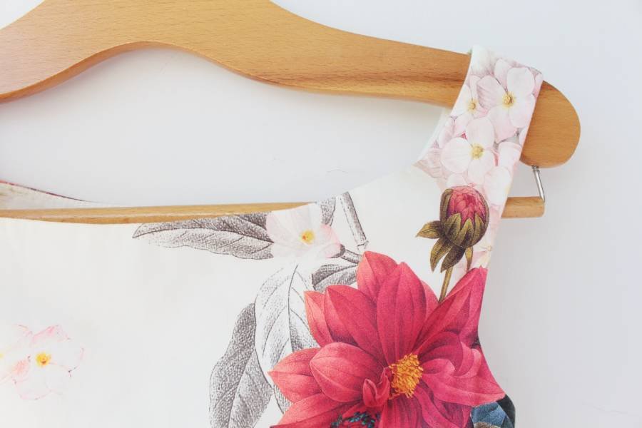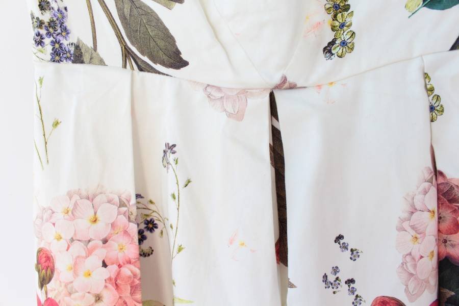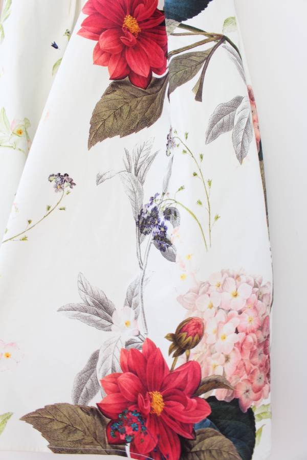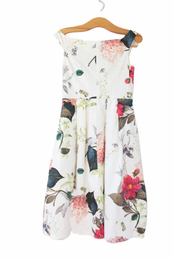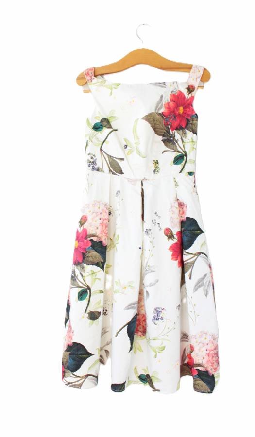 Piękna sukienka vintage kwiaty. Biała podszewka i punktowo podszewka z siateczki, która modeluje kształt sukienki.