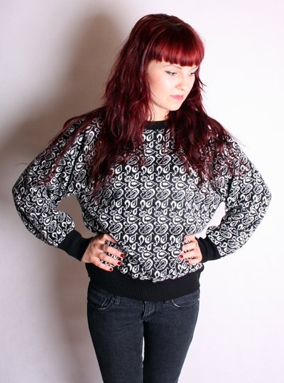 Czarno biały sweterek we wzorki, rozmiar s,osoba na zdj.nosi rozm.S