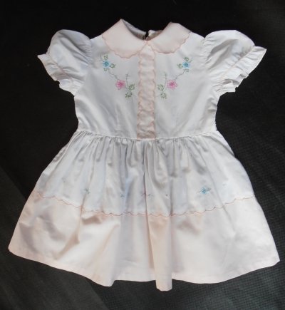 Sukieneczka dla małej dziewczynki,firmy Firiendship.Materiał syntetyk + bawełna.Rozmiar na 18 miesięcy.Odcięta w pasie.Zapinana ztyłu na zamek.Rękawek krótki,bufki.Materiał biały,łączony z kremowym.Wyszywane kwiatki.Stan bardzo dobry.Długość 46 cm.pod pachami 58 cm.pas 52 cm.