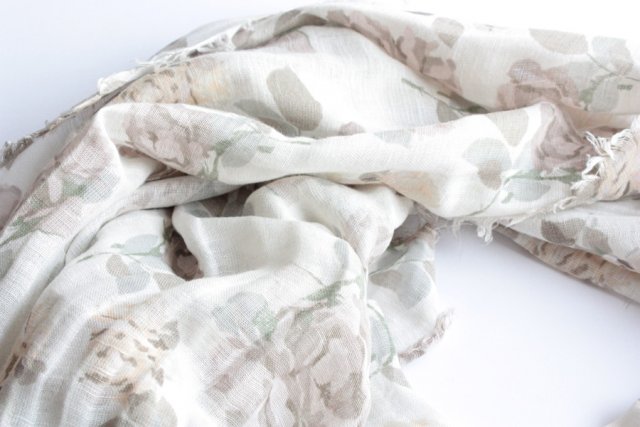 Duży szal w subtelnych pastelowych tonach, wykonany z materiału o luźno tkanej strukturze (w mojej ocenie jest to bawełna). Możesz owinąć się nim szyję kilka razy, narzucić na ramiona lub dowolnie stylizować dzięki jego dużym rozmiarom. Z pewnością nada stylizacji kobiecego i subtelnego charakteru.